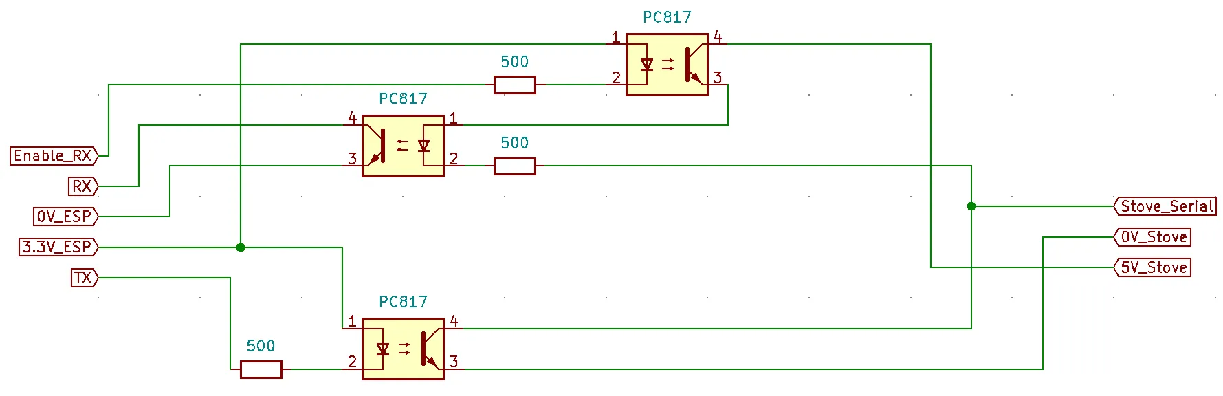 Section titled “Connecting your stove”Most MicroNova based pellet stoves have a serial output. In most cases this output has 4 pins: GND, 5v, 20V and DATA.